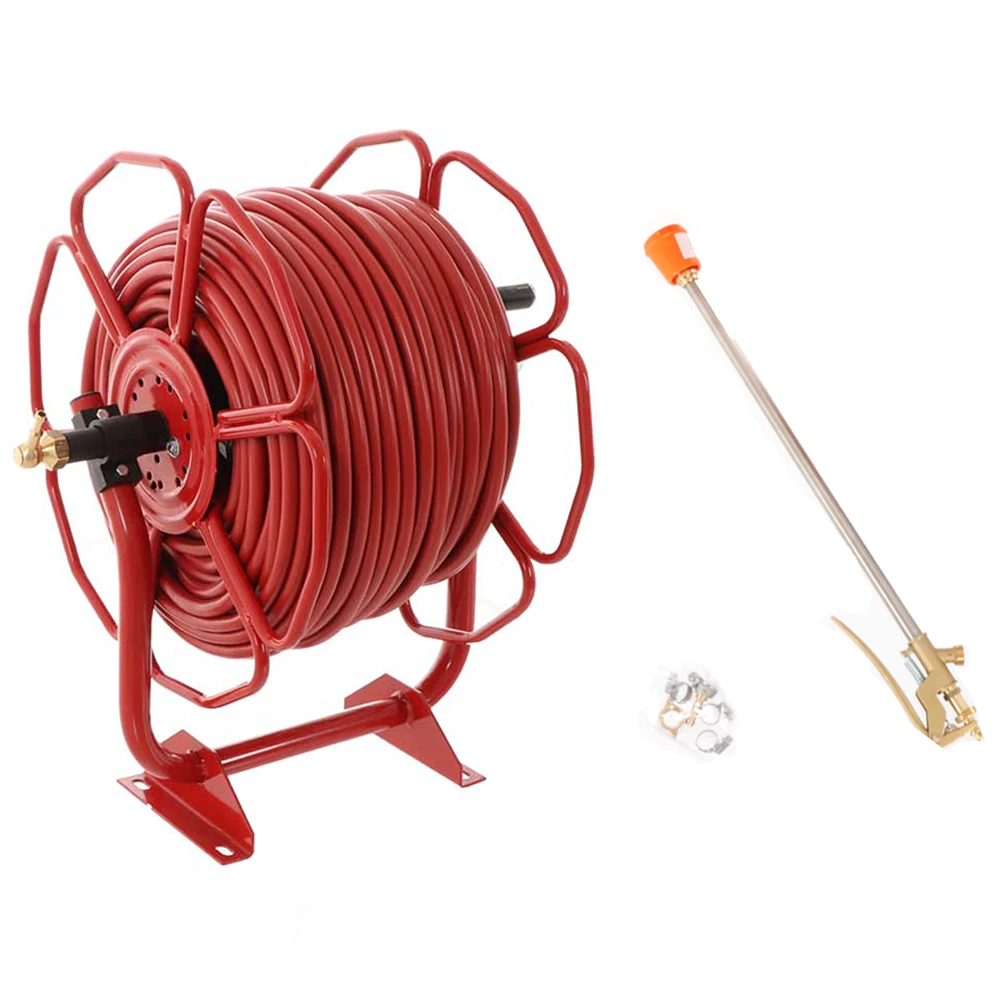 L è predisposto per essere montato su una botte o su altri macchinari. La pistola è di tipo professionale e il tubo da 100mt è ad alta pressione. Nel kit anche un raccordo in ottone per la lancia e 2 fascette.