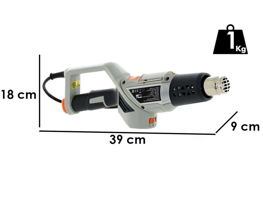 Dotato di tre potenze, la prima impostazione a 50°C viene usata per sfiato e raffreddamento, la seconda a 400°e la terza a 600°C utile per bruciature erbe infestanti e accendere il barbecue.