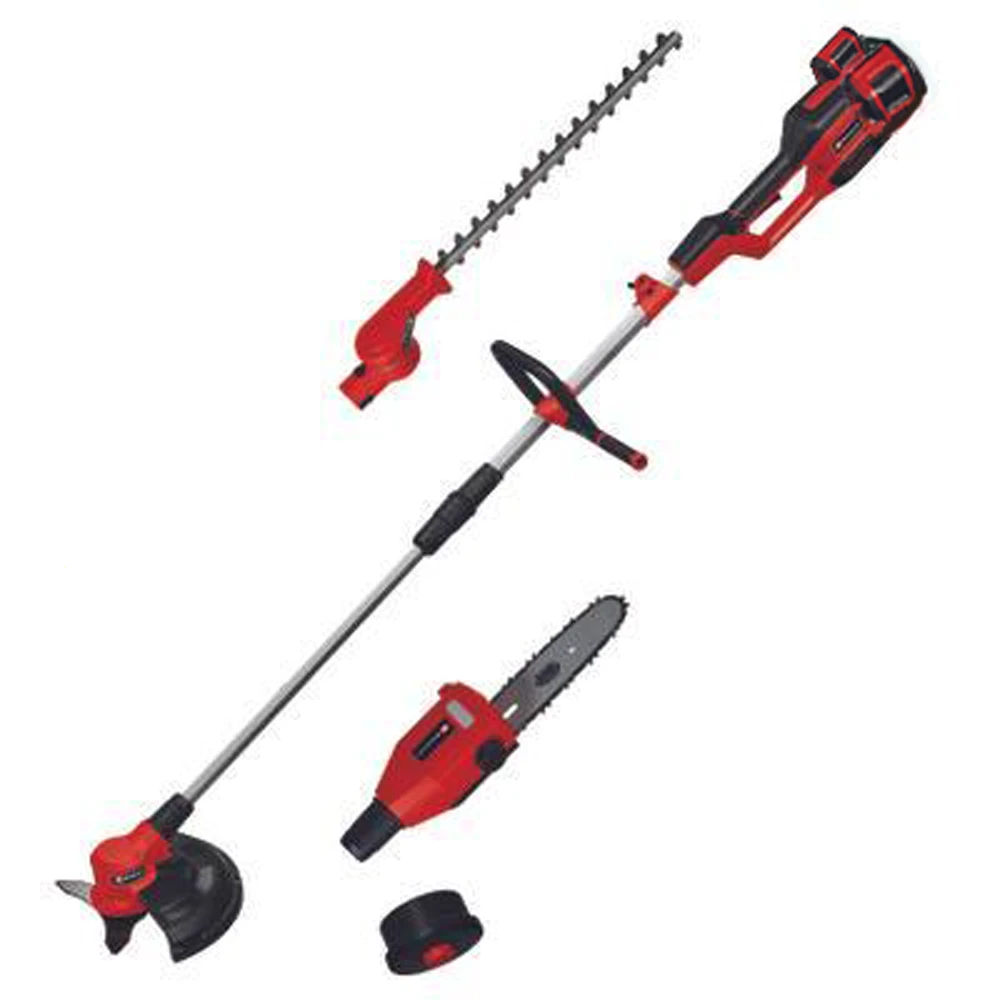 La testina del tagliasiepi è inclinabile in 7 posizioni, la bobina del decespugliatore è dotata di testina automatica a pressione e l’utensile multifunzione dispone inoltre di una lama a 3 denti di alta qualitÃ