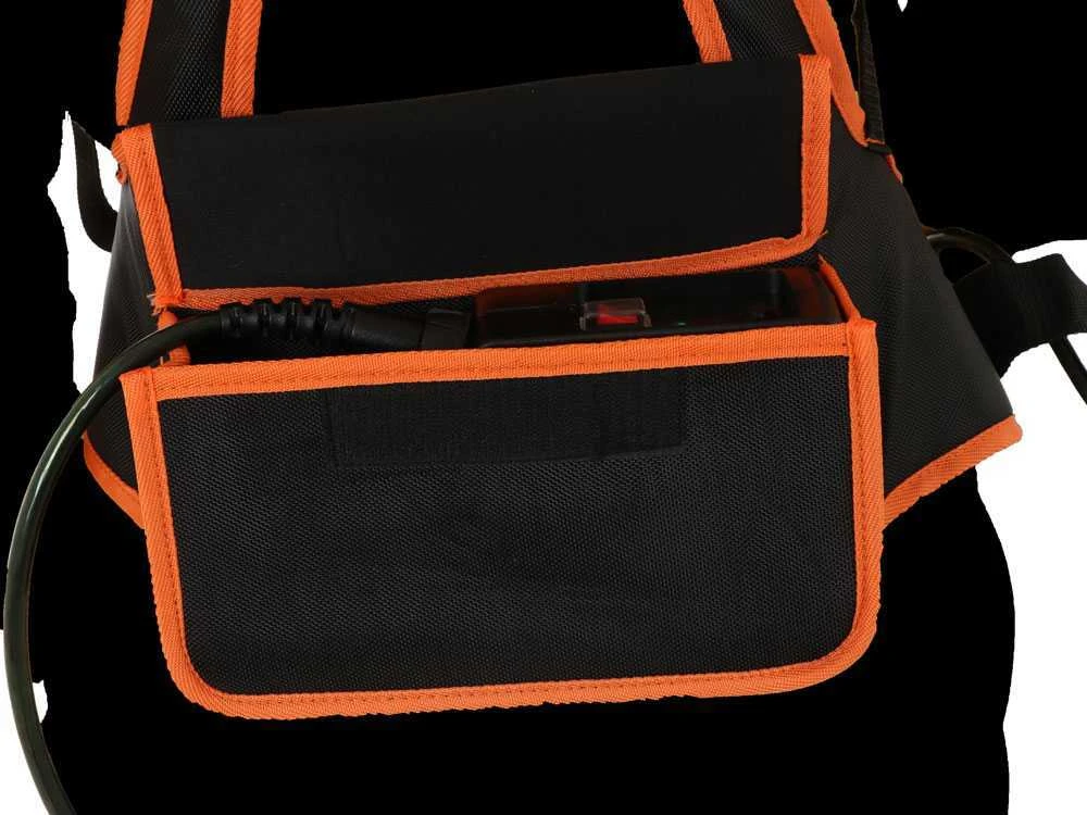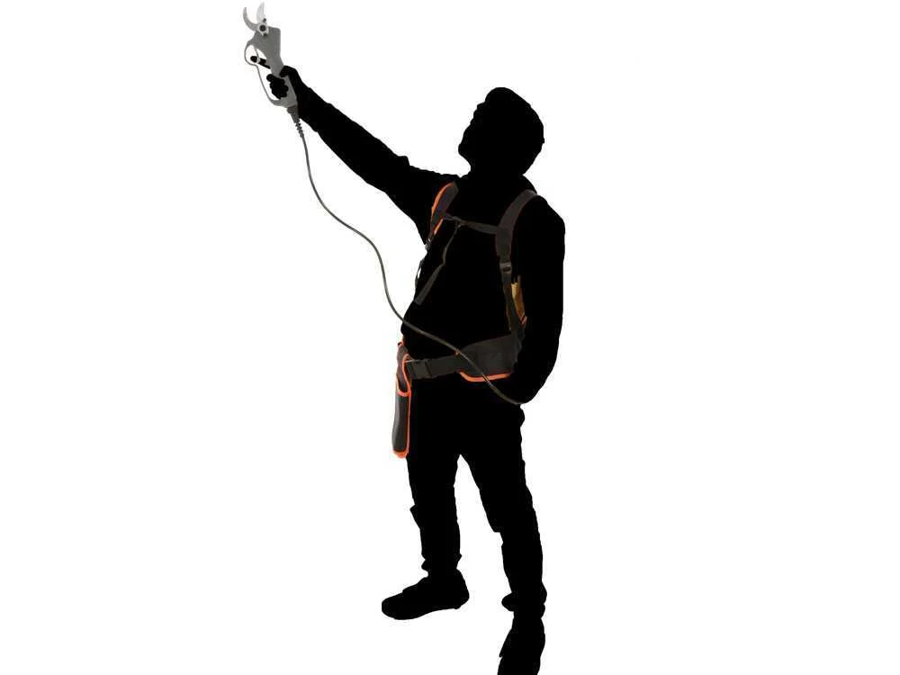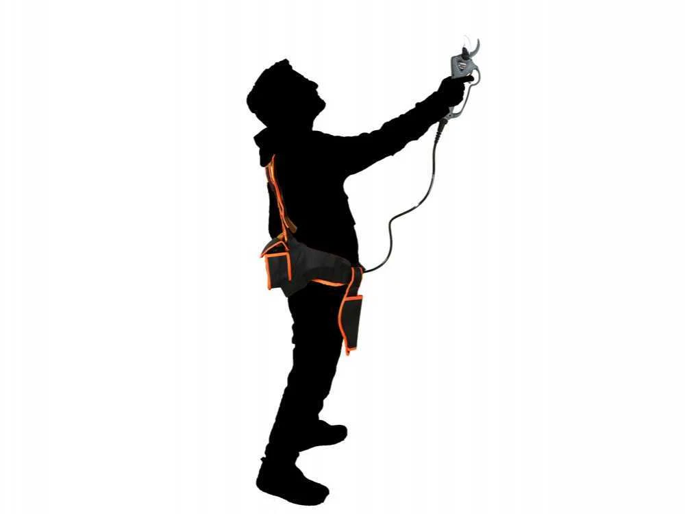 La batteria è Molto compatta: la batteria al litio è alloggiata in una nell’imbragatura in dotazione. Questo consente la massima maneggevolezza della forbice e libertà di movimento.