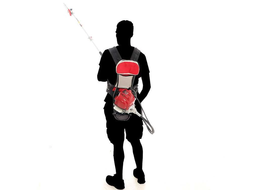Il macchinario è un attrezzo multifunzione leggero e maneggevole, dotato di innovativo motore a zaino.
