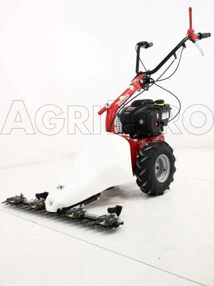 Questo la differenzia da tutte le motofalciatrici semoventi con motore a scoppio classiche sul mercato, proposte da tutti i vari produttori, che sono ancora dotate tutte di barra falciante movimento monolama (si muove solo la lama superiore, mentre la lama inferiore è fissa).