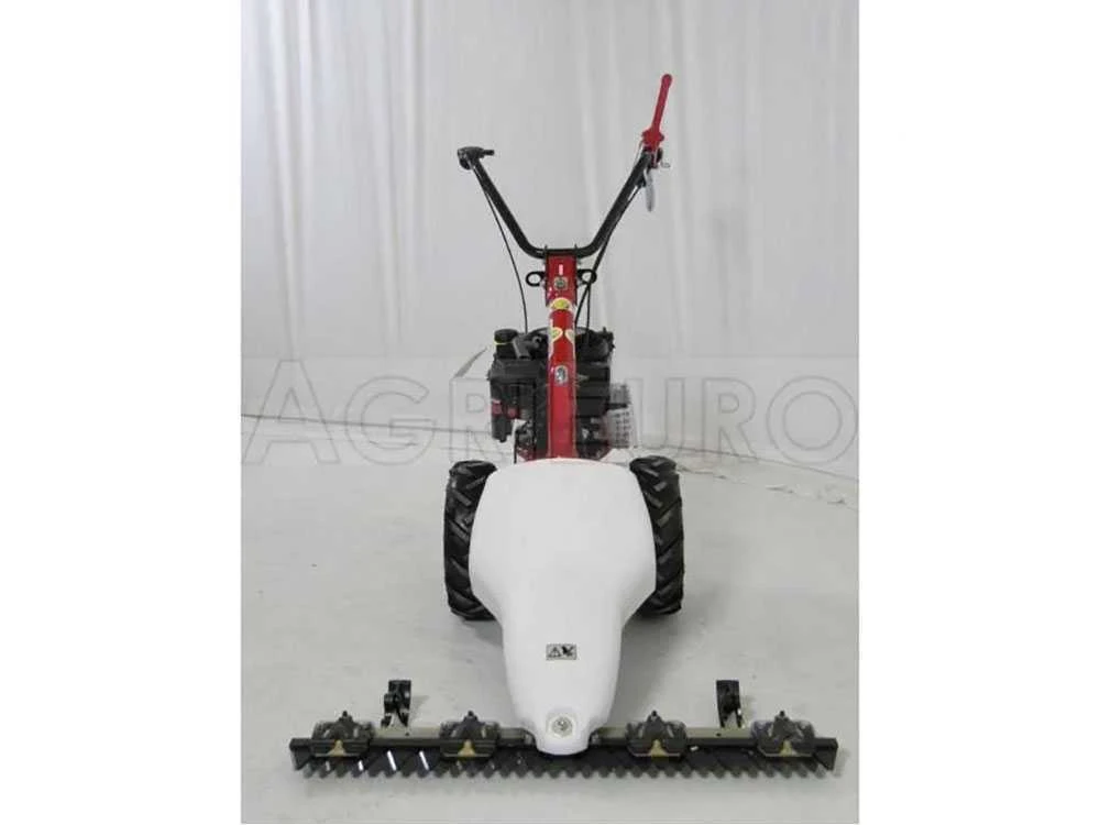 Proponiamo questa motofalciatrice a scoppio semovente, con ruote pneumatiche scolpite trazionate, collegate ad una trasmissione a vite senza fine in bagno, dotata di unica marcia avanti. L’accessorio (fornita di serie nel prezzo d’inserzione) è del tipo (sia la lama inferiore che quella superiore di cui è composta la barra si muovono ed in moto contrapposto). Questo la differenzia da tutte le motofalciatrici con motore a scoppio classiche sul mercato, proposte da tutti i vari produttori, che sono ancora con movimento monolama (si muove solo la lama superiore, mentre la lama inferiore è fissa