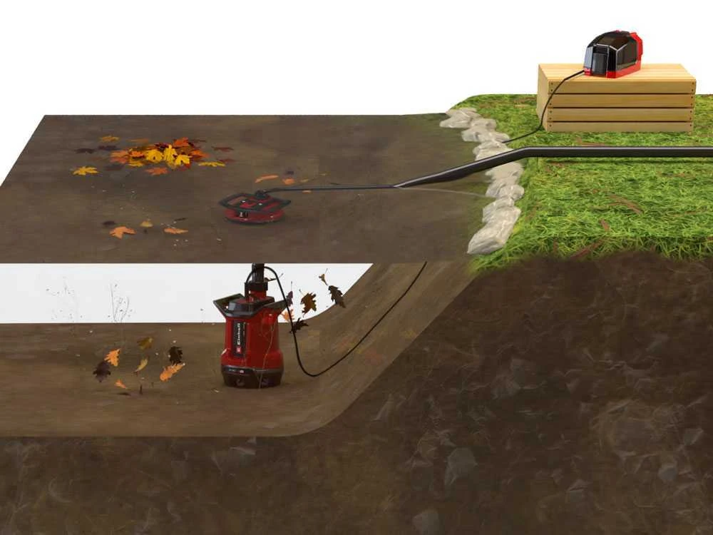 Il lungo collegamento del cavo alla scatola della batteria consente una maggiore profondità di immersione: per pompare e rimpinguare l’acqua indipendentemente dalla rete elettrica, con flessibilità d’uso e un potente funzionamento.