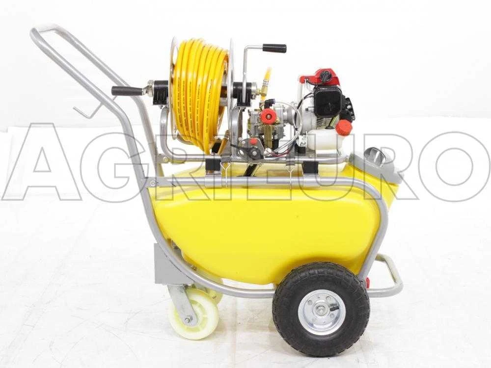 l’intero telaio e l’avvolgitubo sono realizzati in acciaio.La motopompa da irrorazione viene spedita completa di e di numerosi altri accessori.