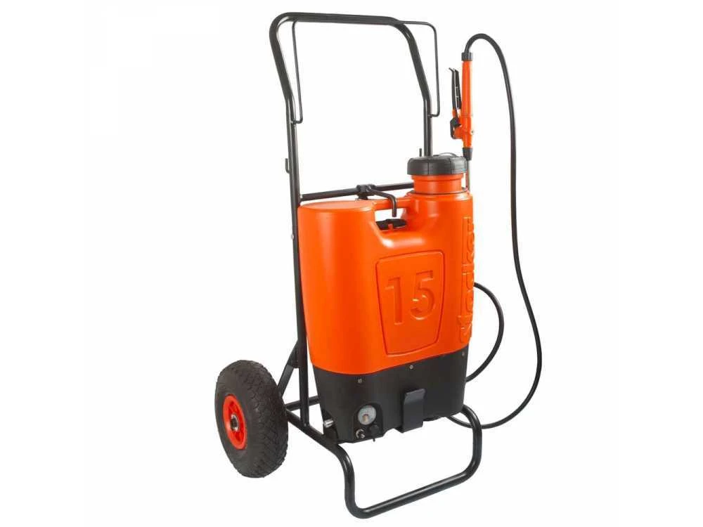 La fantastica Pompa a Zaino Elettrica con Trolley della Stocker è molto comoda poichè è possibile trasportarla sia a spalla, sia con il trolley.