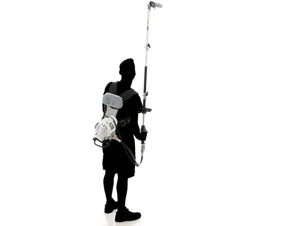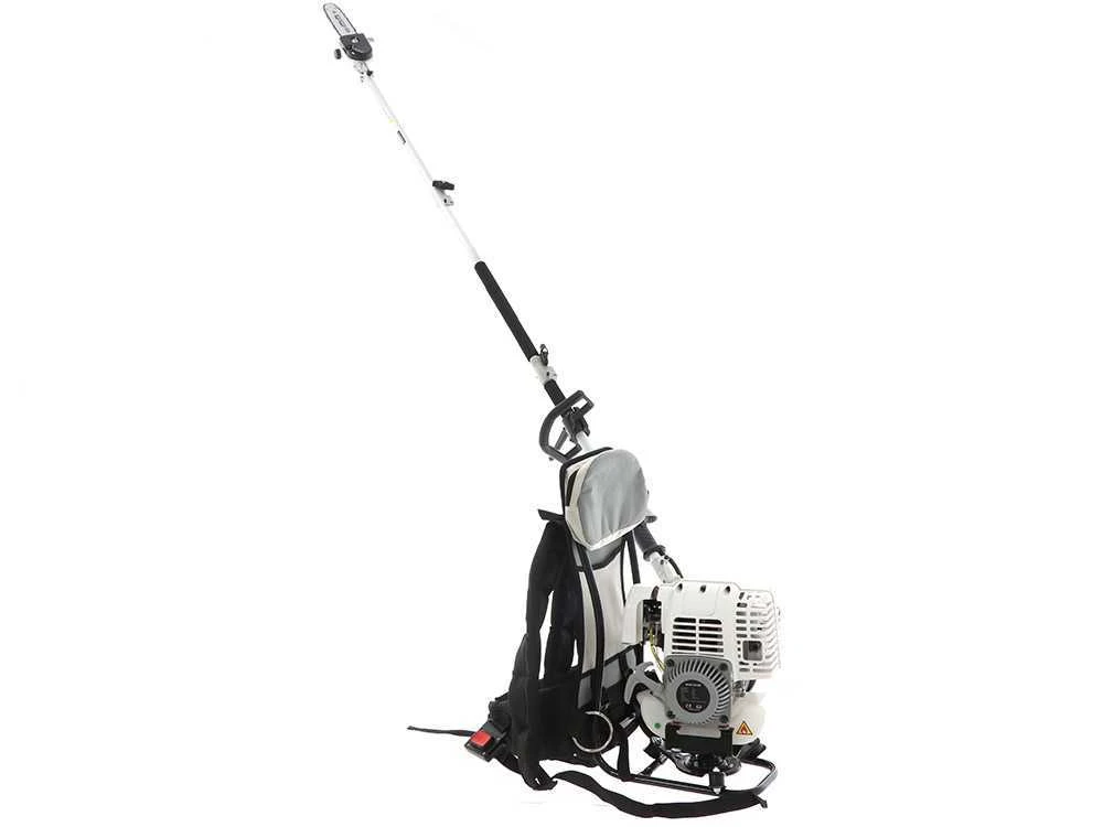 Dotato di impugnatura singola, zaino imbottito ed asta di prolunga da 80 cm inclusa.
