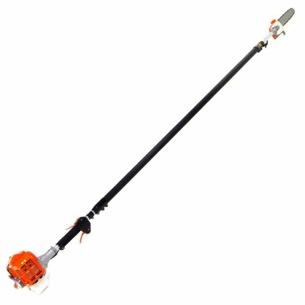 Il potatore telescopico è un potatore con motore a scoppio da 26 cc che sviluppa circa 1 Hp di potenza ed è dotato di una barra di taglio a catena della lunghezza di 25 cm con serbatoio olio integrato.