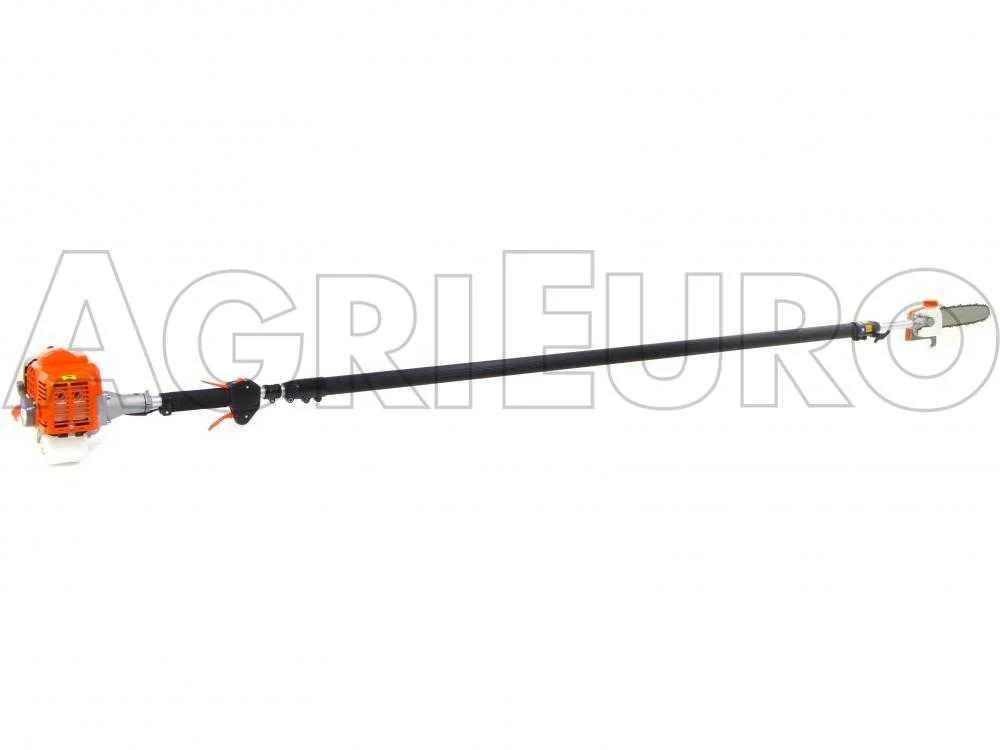 E’ dotato di un lungo manico di che si allunga da 2,9 mt fino a ben 4,25 mt di lunghezza, tra i più lunghi di questa categoria, permette la potatura di alberi ad altezze molto elevate, fino ad oltre 5/5,5 metri di altezza.