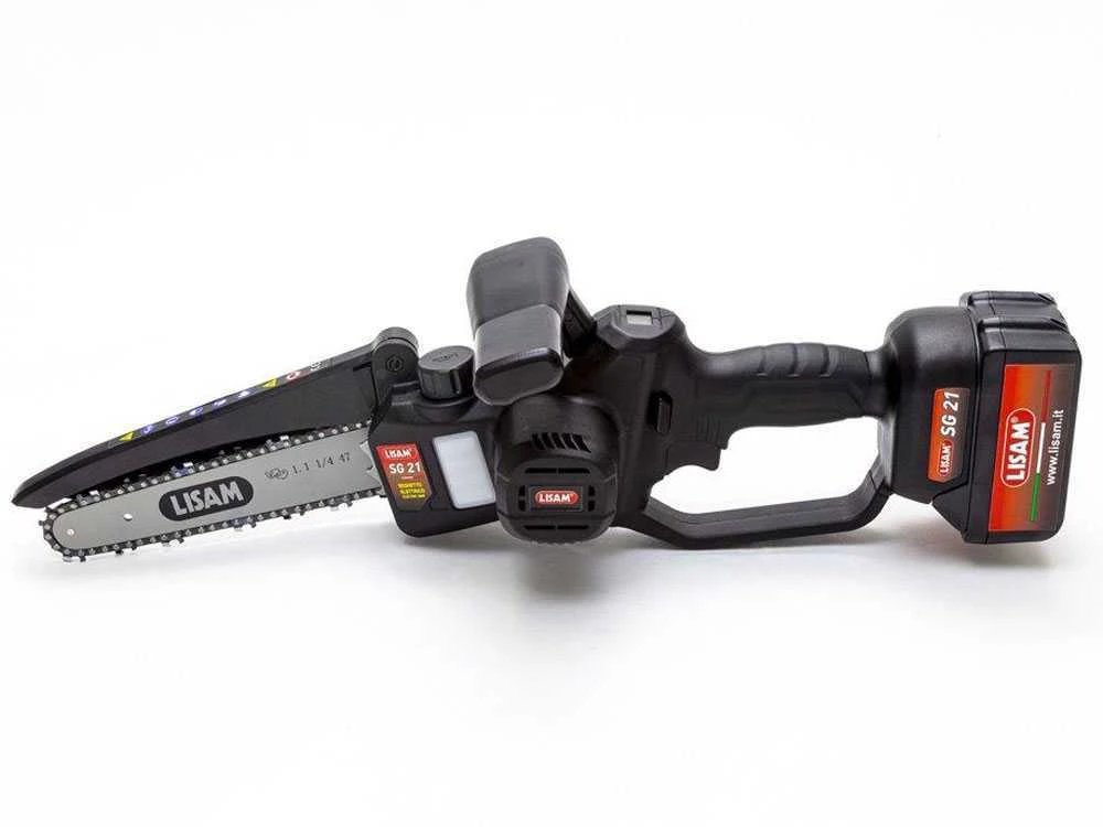 Il Lisam SG 21 è un potatore a batteria alimentato da una batteria agli ioni di litio. Grazie alle sue dimensioni ridotte lo rendono più semplice da utilizzare rispetto ai classici potatori a scoppio.