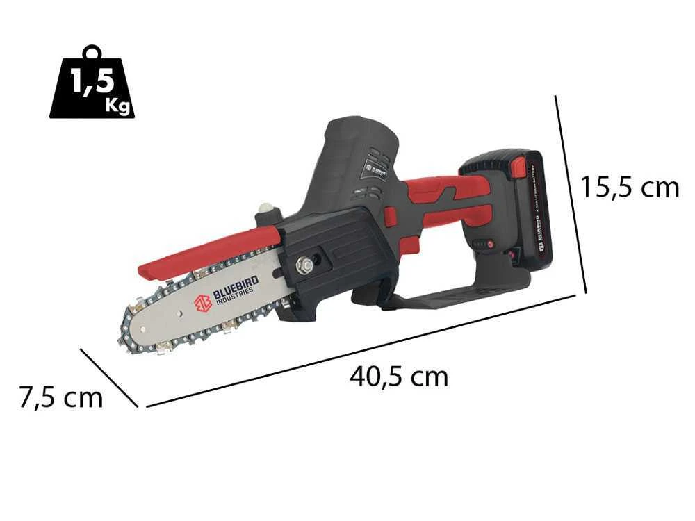 La pratica impugnatura ergonomica antiscivolo e il pulsante di attivazione della catena ti permettono di utilizzare il tuo potatore in modo semplice e intuitivo. Inoltre le e il (solo 1.5 kg) eliminano completamente la fatica.