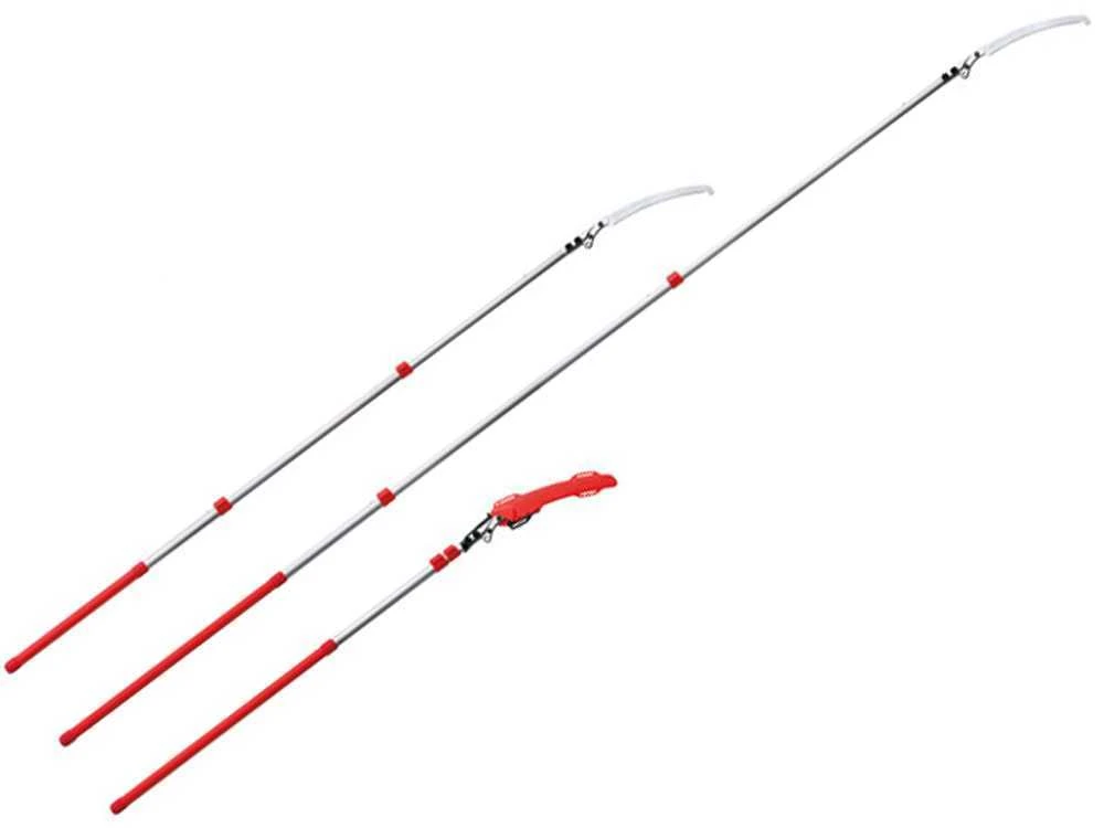 L’asta divisa in tre sezioni permette di avere un controllo ottimo nei tagli bassi quando sono chiuse e offre una visione ottimale globale della pianta da potare quando si trova alla massima estenzione.