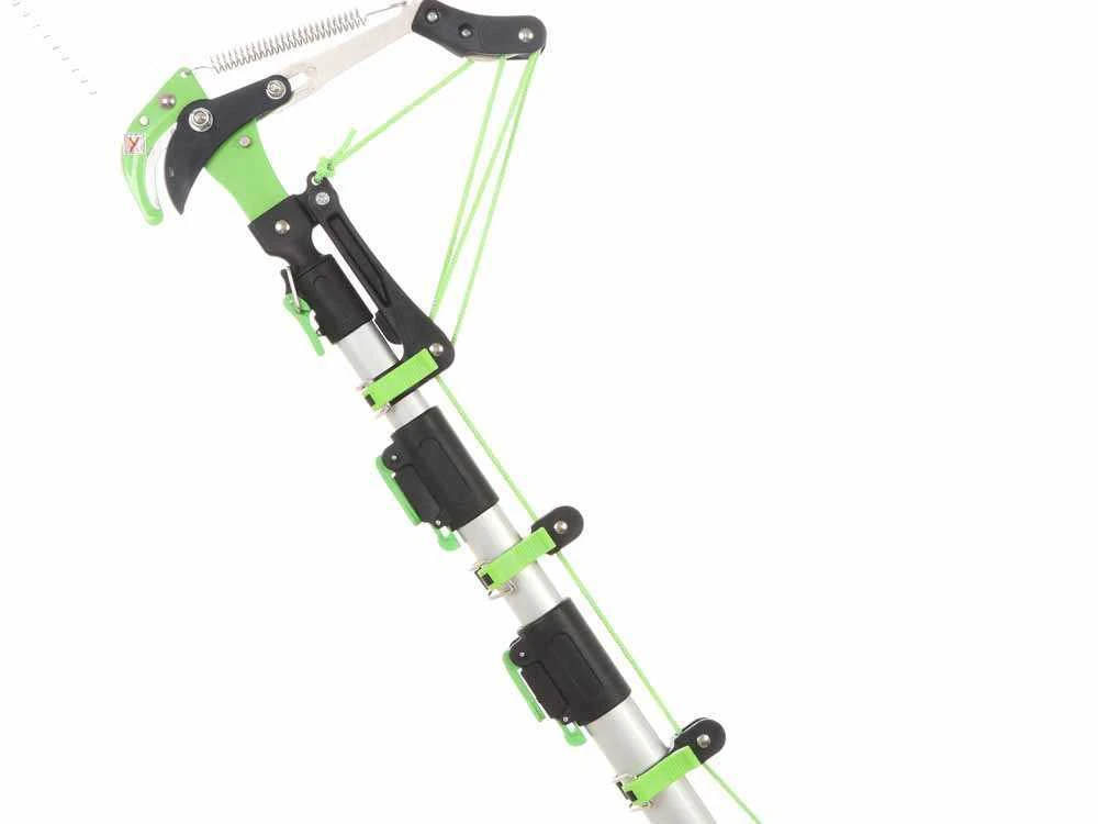 Lo svettatoio completo di segaccio risulta essere facilmente montabile ma comunque stabile e sicuro grazie ai tre morsetti ed un gancio con i quali è attaccato all’asta telescopica.